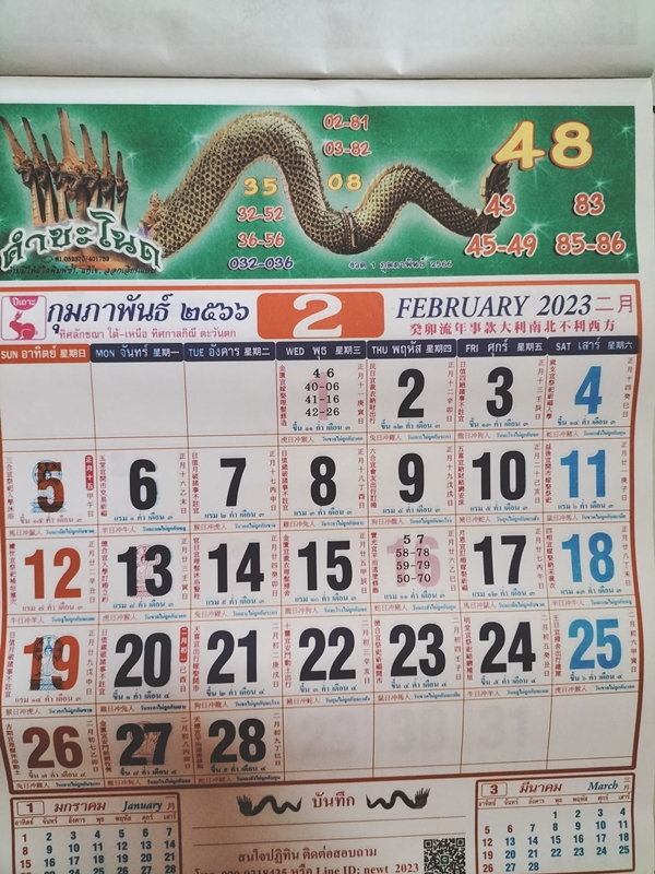 ปฏิทินคำชะโนด เลข 2 ตัว เลขเด็ด 16 2 66