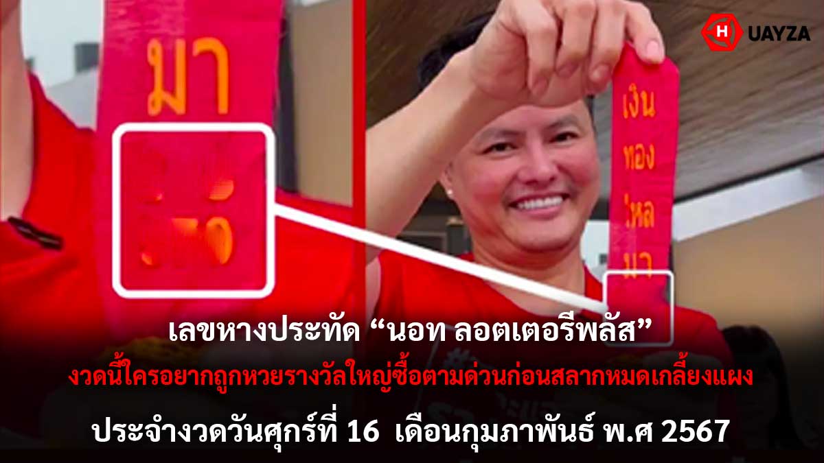 หวย “นอท ลอตเตอรี่พลัส” งวดนี้แจกจุกๆ ให้เอาไปรวยในงวด 16 กุมภาพันธ์ 2567
