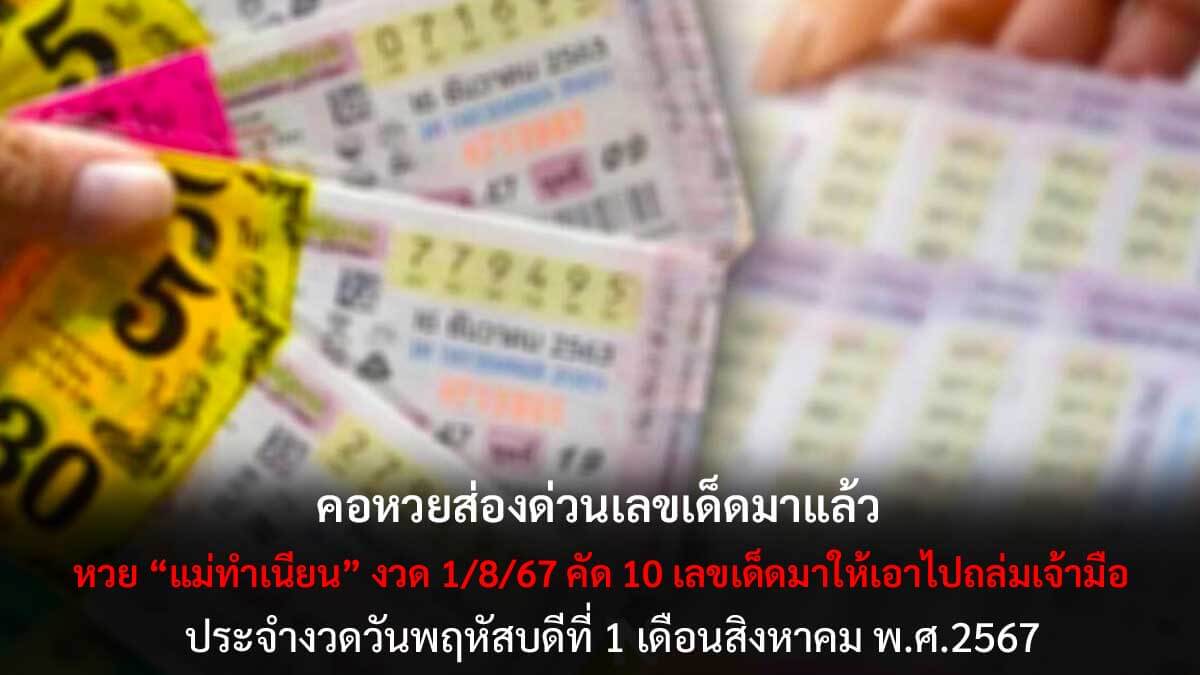 หวยแม่ทำเนียนสรุป 10 เลขเด็ดมาให้เอาไปรวยงวด 1 สิงหาคม 2567