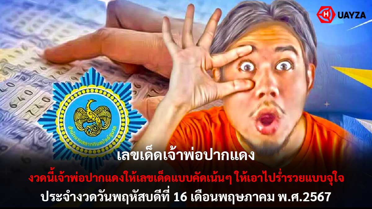 เลขเด็ดเจ้าพ่อปากแดงมาแล้วลุ้นเลขเด่น-รอง งวด 16 พฤษภาคม 2567