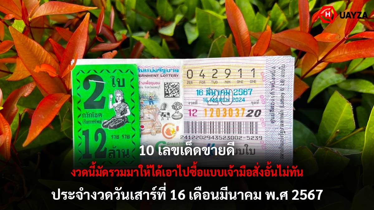 10 อันดับเลขเด็ดงวดนี้ที่คอหวยกว้านซื้อ “เลขดัง” กับ “เลขมงคล” งวด 16 มีนาคม 2567
