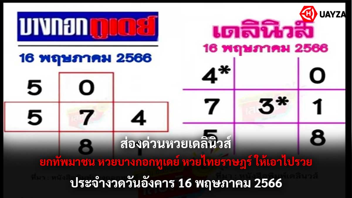 ส่องด่วน หวยเดลินิวส์ หวยบางกอกทูเดย์ หวยไทยราษฎร์ ชี้เป้าความรวยให้เซียนหวยในงวด 16 พฤษภาคม 2566