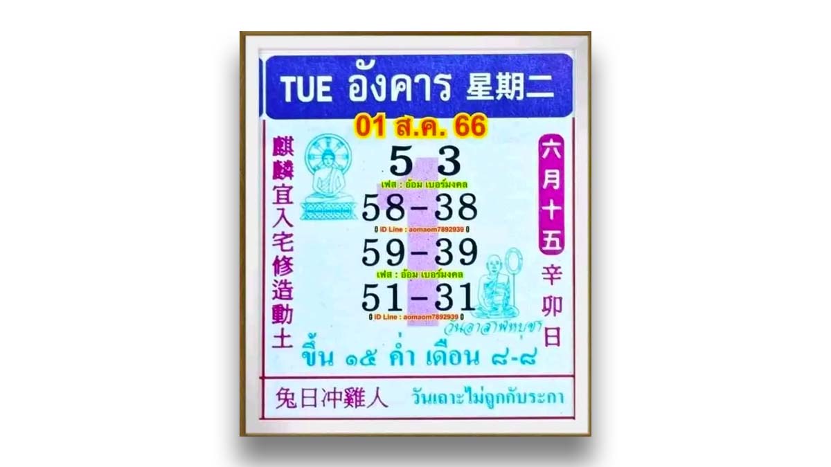 - เลขสองตัว 58 – 38 – 59 – 39 – 51 – 31