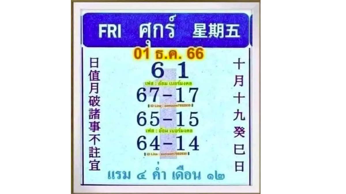 หวยออกวันศุกร์ งวด 1 ธันวาคม 2566