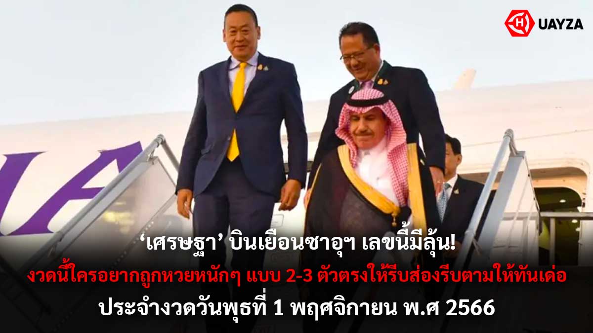 เลขเครื่องบินนายกไปซาอุงวดนี้คอหวยหวังให้โชคหนักๆ ปังๆ ในหวยรัฐบาลไทยงวด 1 พฤศจิกายน 2566