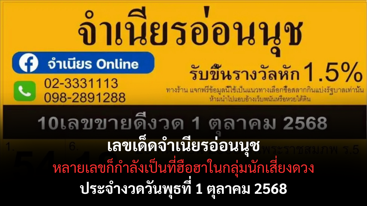 เลขเด็ดจำเนียรอ่อนนุช งวด 1 ตุลาคม 2568 เลขดังจากกระแสที่น่าติดตาม