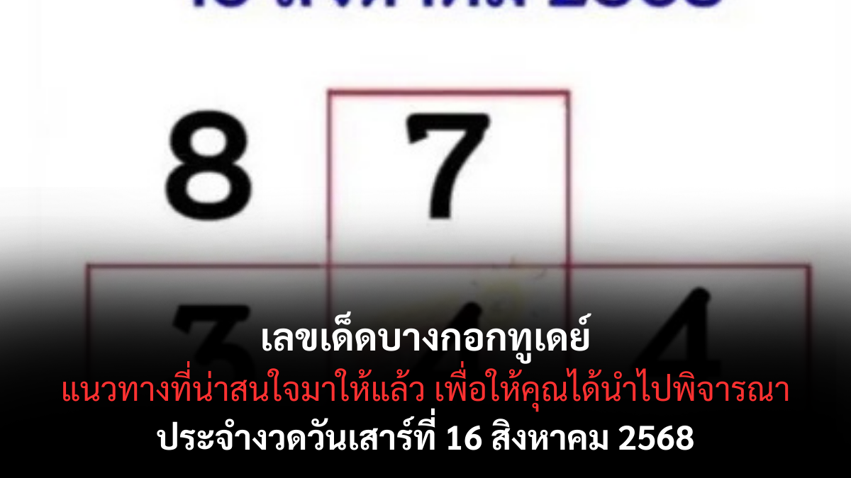 เลขเด็ดบางกอกทูเดย์ 16 สิงหาคม 2568 ใกล้ถึงวันแห่งความหวังอีกครั้งแล้วสำหรับคอหวยทุกท่าน! วันที่ 16 สิงหาคม 2568 นี้ อย่าปล่อยให้โอกาสทองหลุดมือไป เพราะตอนนี้แนวทางเลขเด็ดจากสำนักดังอย่าง “บางกอกทูเดย์” ได้ถูกปล่อยออกมาแล้ว และกำลังเป็นที่จับตามองของเหล่านักเสี่ยงโชคทั่วประเทศ ด้วยชื่อเสียงและความน่าเชื่อถือที่สั่งสมมา เลขเด็ดบางกอกทูเดย์ 16/8/68 ทำให้ทุกครั้งที่มีการเผยแพร่เลขเด็ดจากแหล่งนี้ คอหวยจะแห่กันนำไปพิจารณาเป็นแนวทาง เลขเด็ด ในการซื้อสลากกินแบ่งรัฐบาลกันอย่างคึกคัก
