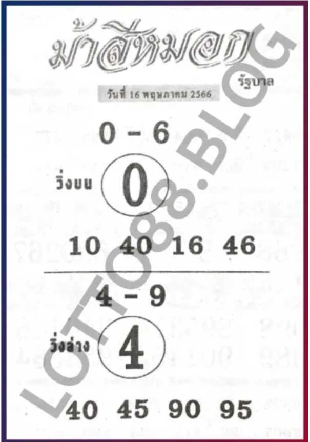 - เลขสองตัวล่าง : 40 – 45 – 90 – 95