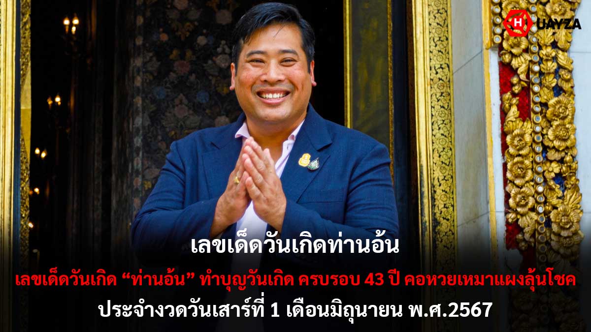 เลขเด็ดวันเกิด “ท่านอ้น” ทำบุญวันเกิด ครบรอบ 43 ปี คอหวยเหมาแผงลุ้นโชคงวด 1 มิถุนายน 2567