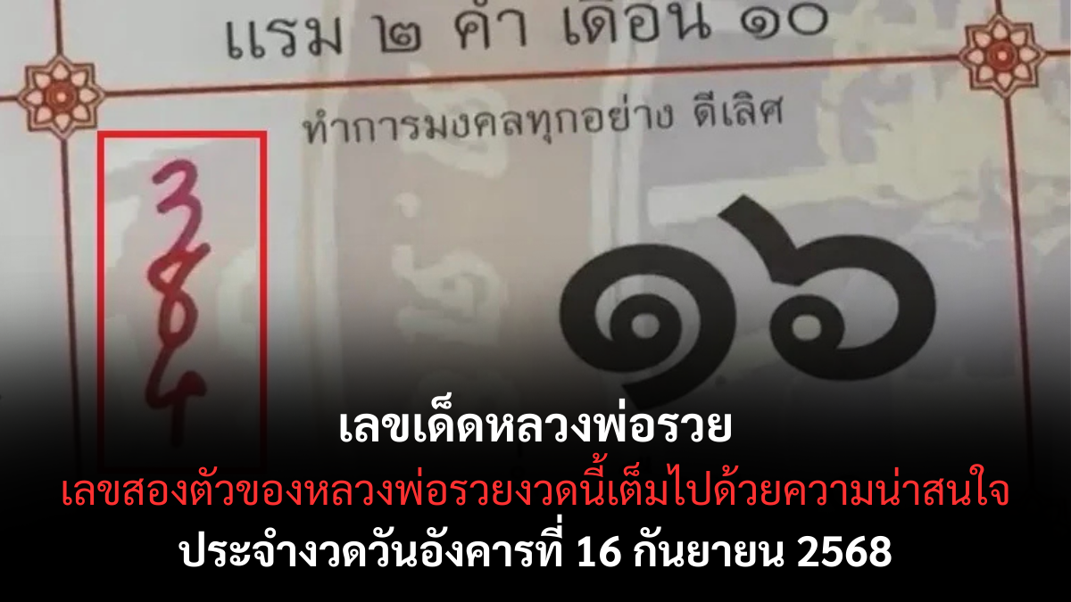 เลขเด็ดหลวงพ่อรวย 16 กันยายน 2568 ใครที่ติดตามความแม่นของหลวงพ่อรวยในงวดนี้ไม่ควรพลาด เพราะชุดเลขเด็ดล่าสุดถือว่ามาแรงและน่าจับตาเป็นที่สุด สำหรับคอหวยที่เชื่อในความศักดิ์สิทธิ์ของหลวงพ่อ ทุกตัวเลขในชุดนี้ถือว่าเป็นตัวเลขที่มีพลังดึงโชคลาภให้กับผู้ที่ติดตามอย่างใกล้ชิด เลขเด็ด ชุดเลขสองตัวของหลวงพ่อรวยงวดนี้เต็มไปด้วยความน่าสนใจ สามารถจับสลับตำแหน่งได้หลายแบบ ทำให้ผู้เล่นมีโอกาสสร้างชุดเลขใหม่ ๆ เพิ่มความสนุกและตื่นเต้นในการลุ้นรางวัล เลขเด็ดหลวงพ่อรวย 16/9/68 ในขณะที่เลขสามตัวถือเป็นไฮไลต์สำคัญ เพราะรวมเอาตัวเลขสองตัวเด่นมาผสมกัน ทำให้เกิดชุดเลขที่หลากหลายและน่าติดตาม