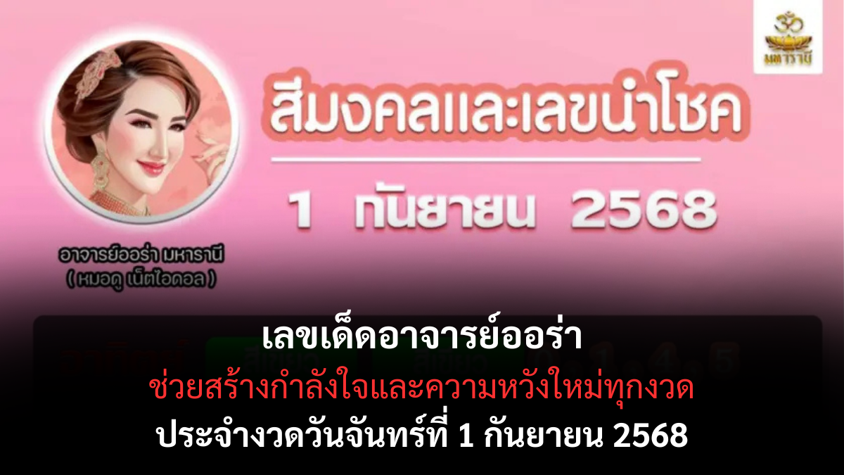 เลขเด็ดอาจารย์ออร่า 1/9/68 งวดนี้มาแรง โชคอาจเป็นของคุณ