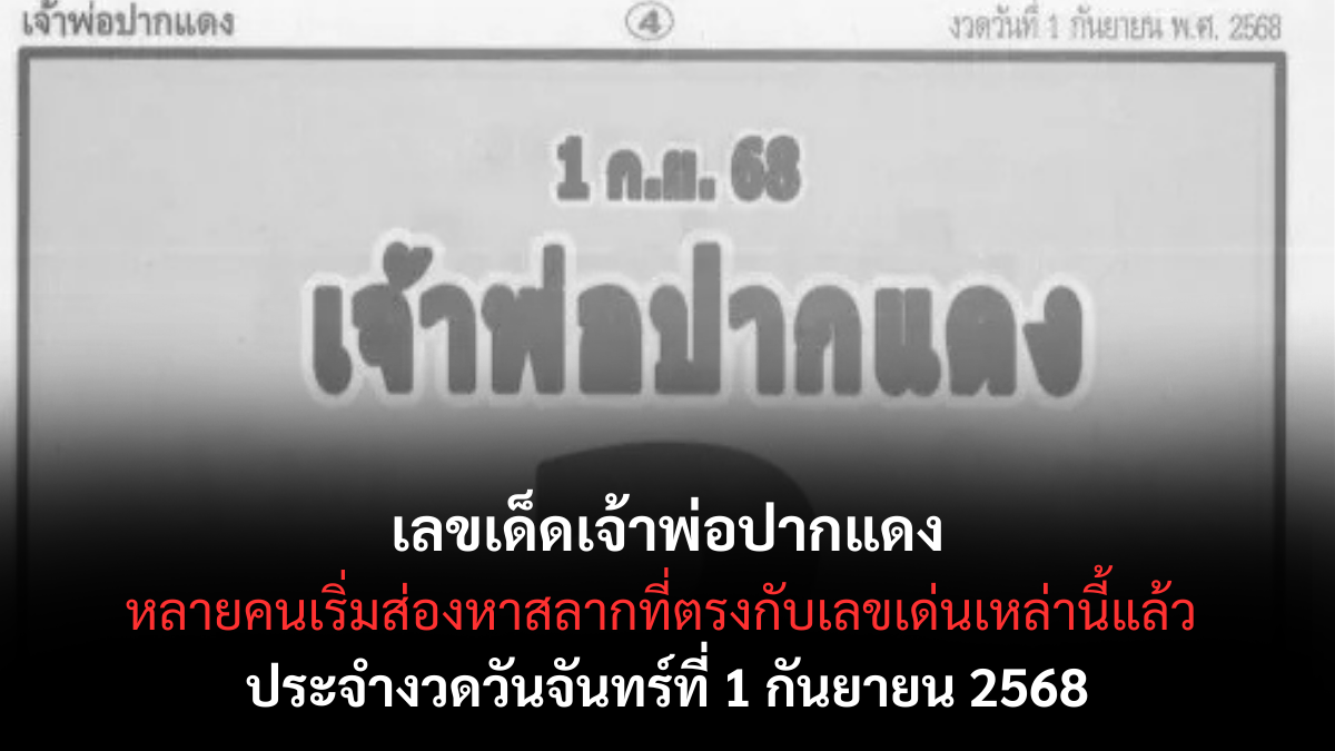 เลขเด็ดเจ้าพ่อปากแดง 1 กันยายน 2568 จาก “เจ้าพ่อปากแดง” เป็นชุดเลขที่คอหวยต่างรอคอยกันอย่างใจจดใจจ่อ เนื่องจากชื่อเสียงที่มาพร้อมกับความแม่นยำในการให้เลขเด็ดในหลายงวดที่ผ่านมา โดยเฉพาะเลขที่เจ้าพ่อปากแดงปล่อยออกมา เลขเด็ดเจ้าพ่อปากแดง 1/9/68 มักจะมีการจับตามองจากนักเสี่ยงโชคจำนวนมาก จนทำให้หลายแผงลอตเตอรี่ เลขเด็ด เริ่มขาดแคลนสลากที่ตรงกับเลขเด็ดเหล่านี้ ในงวดนี้เจ้าพ่อปากแดงได้ปล่อยชุดเลขเด่นที่ได้รับความสนใจอย่างมาก