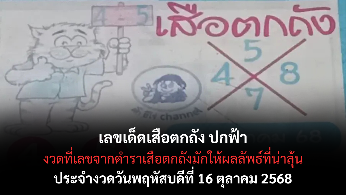 เลขเด็ดเสือตกถัง ปกฟ้า 16/10/68 ตัวเต็งมาแรงในงวดนี้