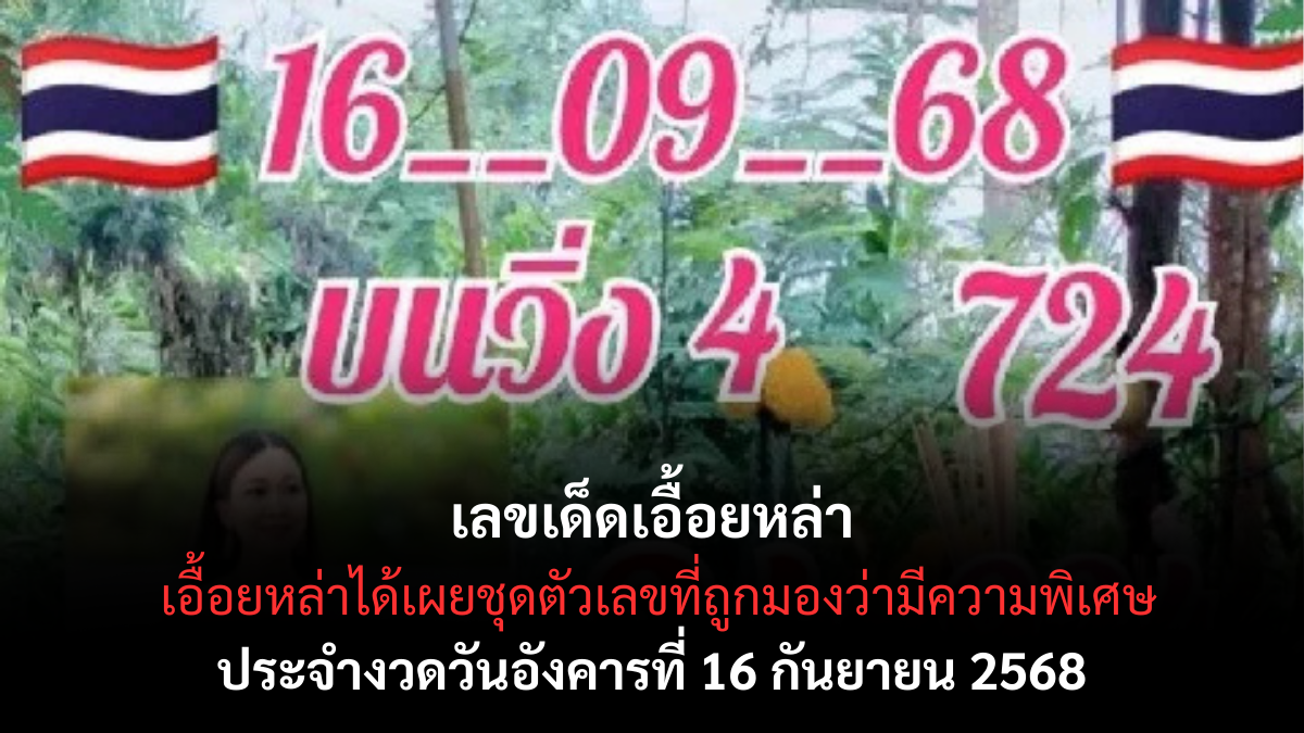 เลขเด็ดเอื้อยหล่า 16/9/68 เอื้อยหล่าพาเฮง แนวทางเด็ดที่กำลังมาแรง