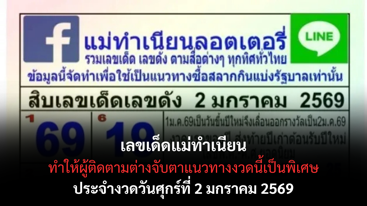 เลขเด็ดแม่ทำเนียน 2/1/69 แนวทางลางดีรับปีใหม่ เสริมโชคเปิดดวง!