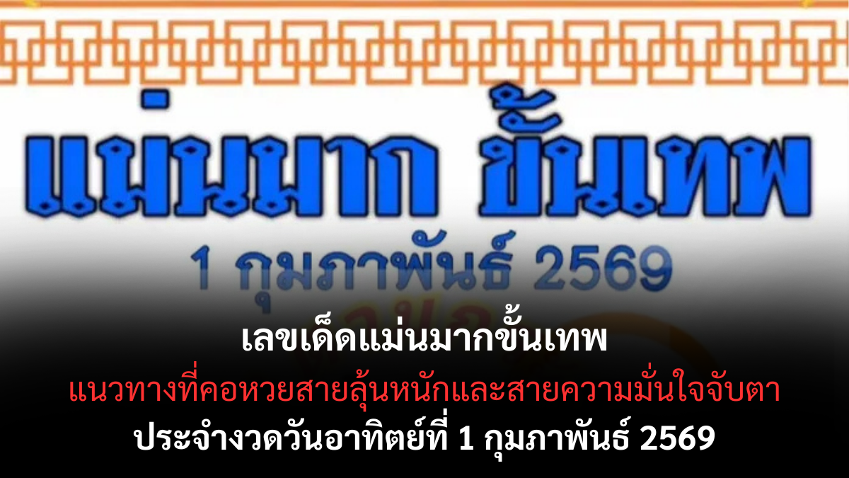 เลขเด็ดแม่นมากขั้นเทพ งวด 1 กุมภาพันธ์ 2569 ฟอร์มแรงเกินต้าน ลุ้นให้สุดต้นเดือนนี้