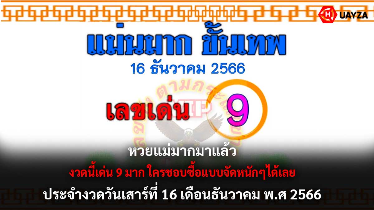 เลขเด็ดแม่นมากขั้นเทพ 16 12 66