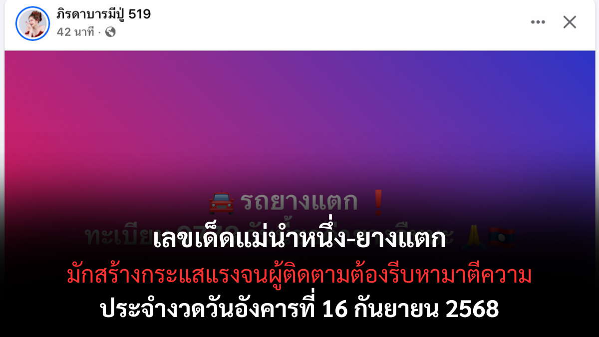 เลขเด็ดแม่นำหนึ่ง-ยางแตก 16 กันยายน 2568 กำลังเป็นที่จับตามองอย่างมากในโลกโซเชียล เพราะชื่อเสียงของสำนักนี้มักมาพร้อมความแม่นยำและสีสันในการปล่อยแนวทาง ทุกครั้งที่มีการเผยเลขเด็ด มักสร้างกระแสแรงจนผู้ติดตามต้องรีบหามาตีความและนำไปใช้ทันที งวดนี้ แม่นำหนึ่ง-ยางแตกได้กลายเป็นอีกหนึ่งความหวัง เลขเด็ด ของนักเสี่ยงโชคทั่วประเทศ โดยเฉพาะกลุ่มเลขสองหลักที่หลายคนมองว่ามีโอกาสพลิกเป็นโชคใหญ่