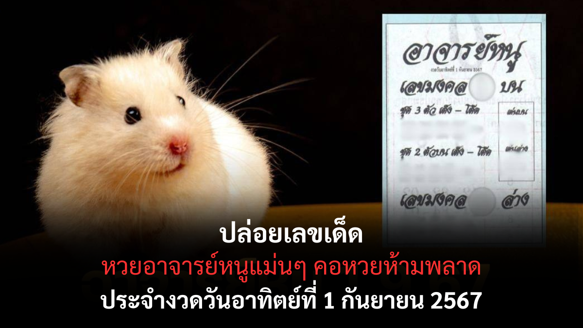 เลขเด็ดอาจารย์หนู ตามสำนักนี้ไม่ผิดหวัง งวด 1 กันยายน 2567