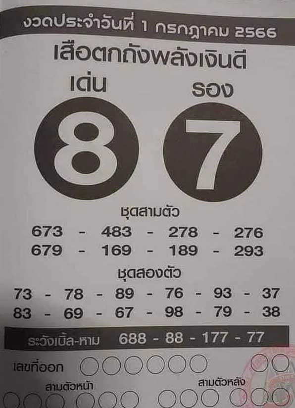 - ระวังเลขเบิ้ล 688 – 88 – 177 – 77