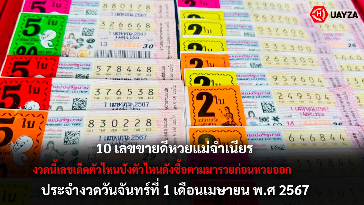 10 เลขขายดี “แม่จำเนียร” งวดนี้คัดมาให้เอาไปซื้อรางวัลใหญ่มารวยในงวด 1 เมษายน 2567