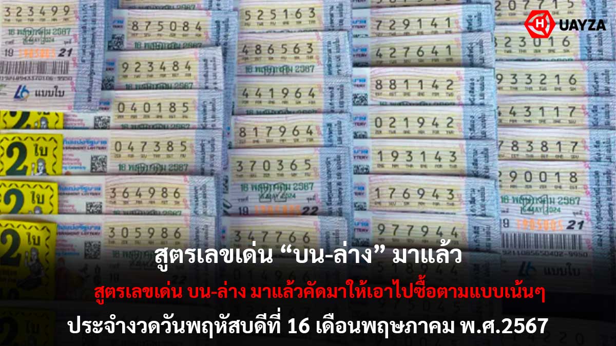 สูตรเลขเด่น บน-ล่าง มาแล้วคัดมาให้เอาไปซื้อตามแบบเน้นๆ ในงวด 16 พฤษภาคม 2567