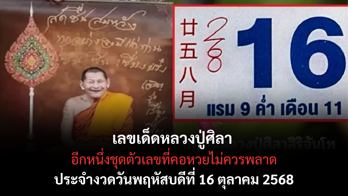 เลขเด็ดหลวงปู่ศิลา 16 ตุลาคม 2568 กำลังเป็นที่สนใจของเหล่าคอหวยที่ศรัทธาและเฝ้าติดตาม […]