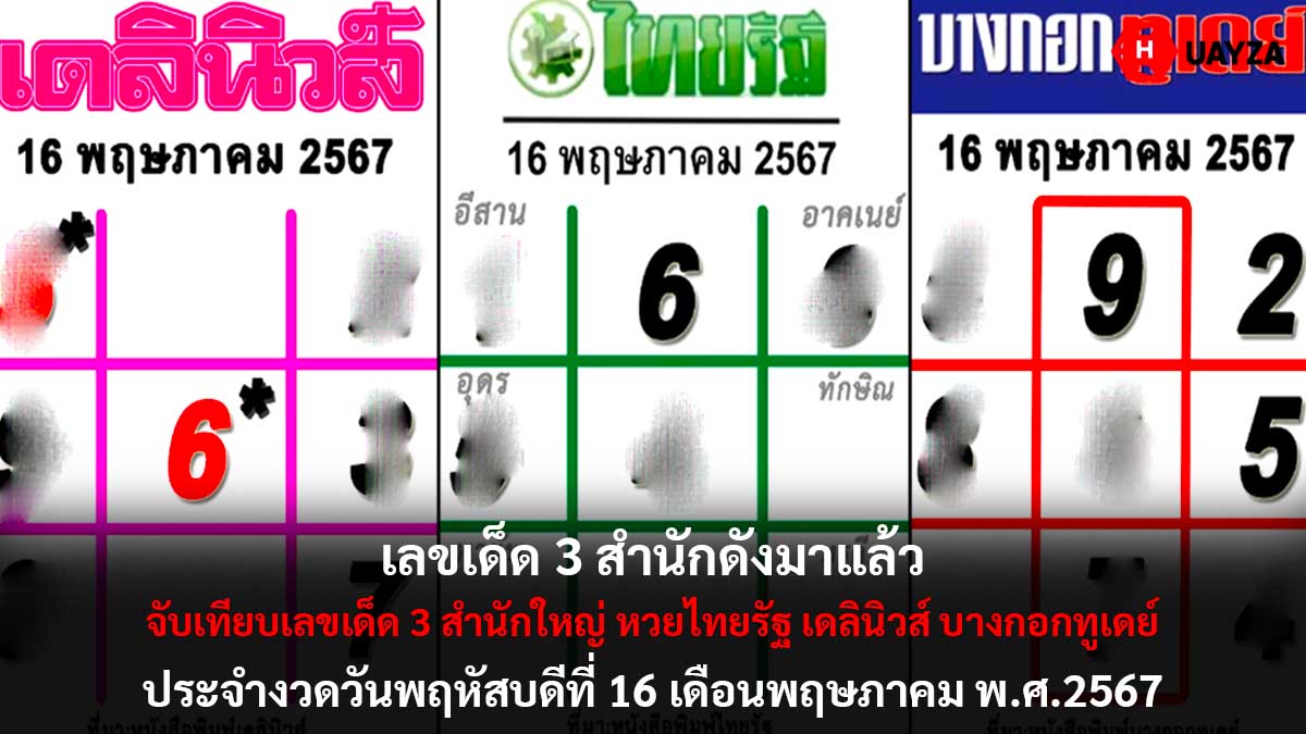 เลขเด็ด 3 สำนักดัง งวด 16/5/67 คัดมาแล้ว! ใครชอบตัวไหนซื้อตามหนักๆ ได้เลย
