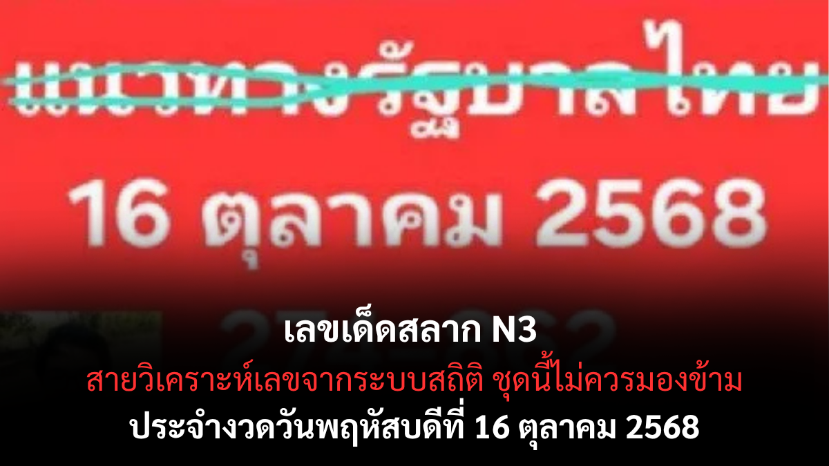 เลขเด็ดสลาก N3 งวด 16 ตุลาคม 2568 แนวทางใหม่มาแรง คอหวยยุคดิจิทัลห้ามพลาด! อ่านทั้งหมด