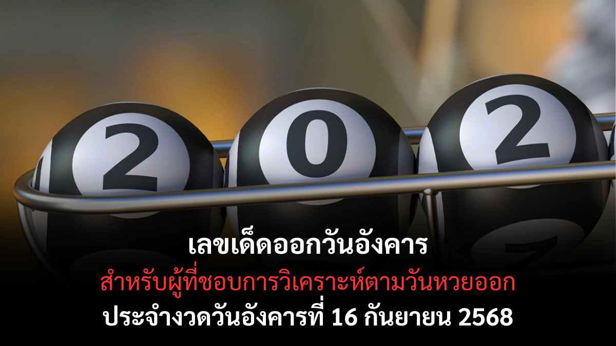 เลขเด็ดออกวันอังคาร 16 กันยายน 2568 แนวทางสถิติที่คอหวยไม่ควรพลาด อ่านทั้งหมด